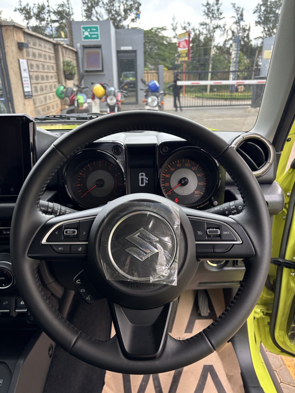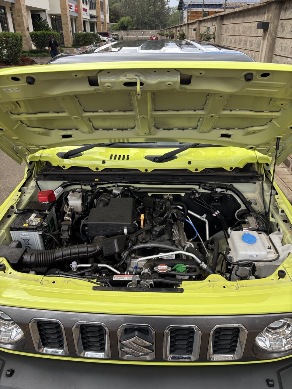 This vehicle is Kinetic Yellow with Bluish Black Roof. We have identical vehicles available in the following colours: